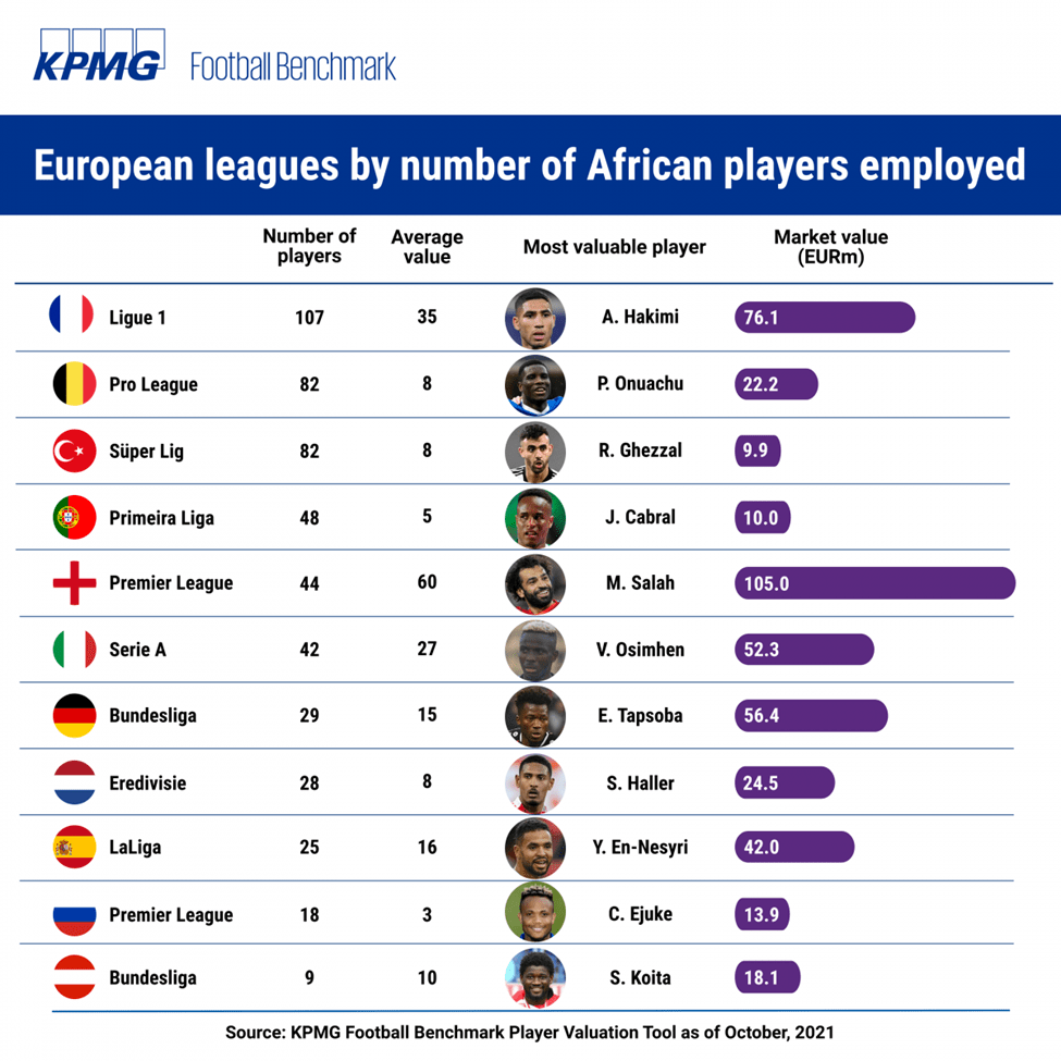 – The representation of African players in major European leagues over the past decade